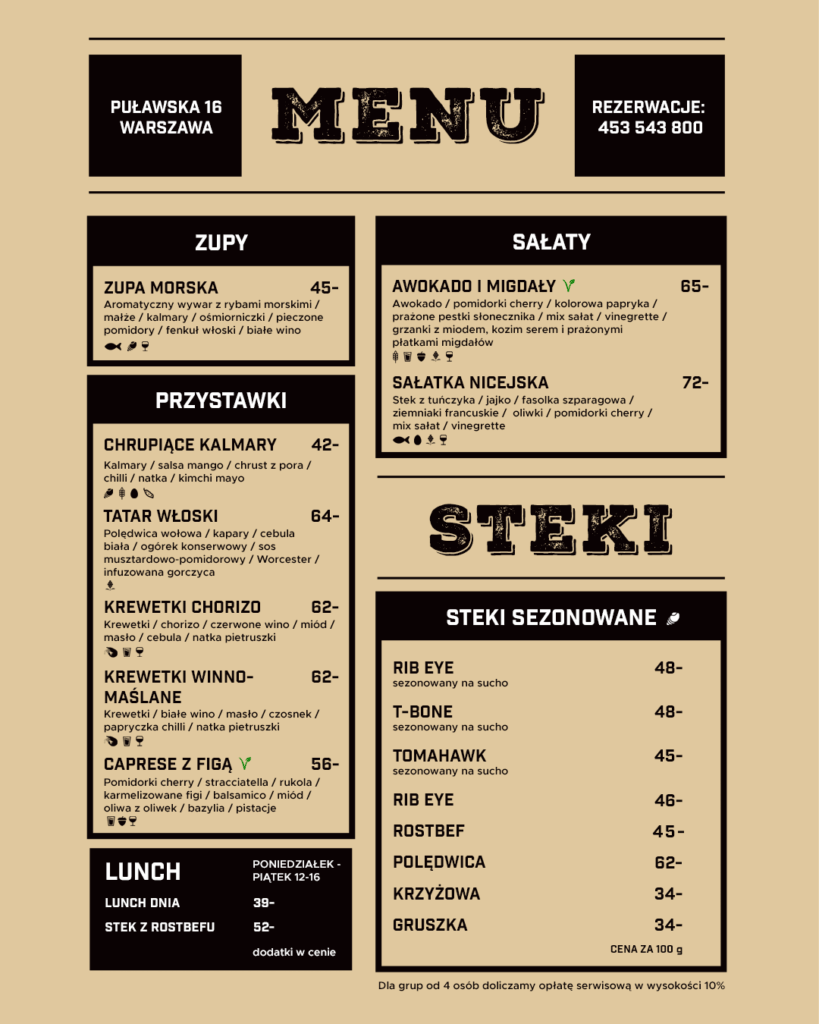 W ofercie znajdziesz bogaty wybór steków, które są naszą specjalnością. Każdy kawałek mięsa pochodzi z zaufanych hodowli, a jego jakość jest gwarantowana przez staranne procesy sezonowania, które nadają mu wyjątkowy smak i teksturę. Proponujemy różnorodne rodzaje steków, w tym klasyczne pozycje, jak rib eye, t-bone czy tomahawk, a także mniej znane, ale równie pyszne kawałki, jak picania czy polędwica.